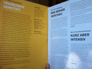 Die Generalversammlung der Genossenschaft Trudelhaus fand am Dienstag, 4. Juni 2013, im Trudelhaus statt. Geschäftsbericht 2012 Protokoll der GV vom 4. Juni 2013 Die IG