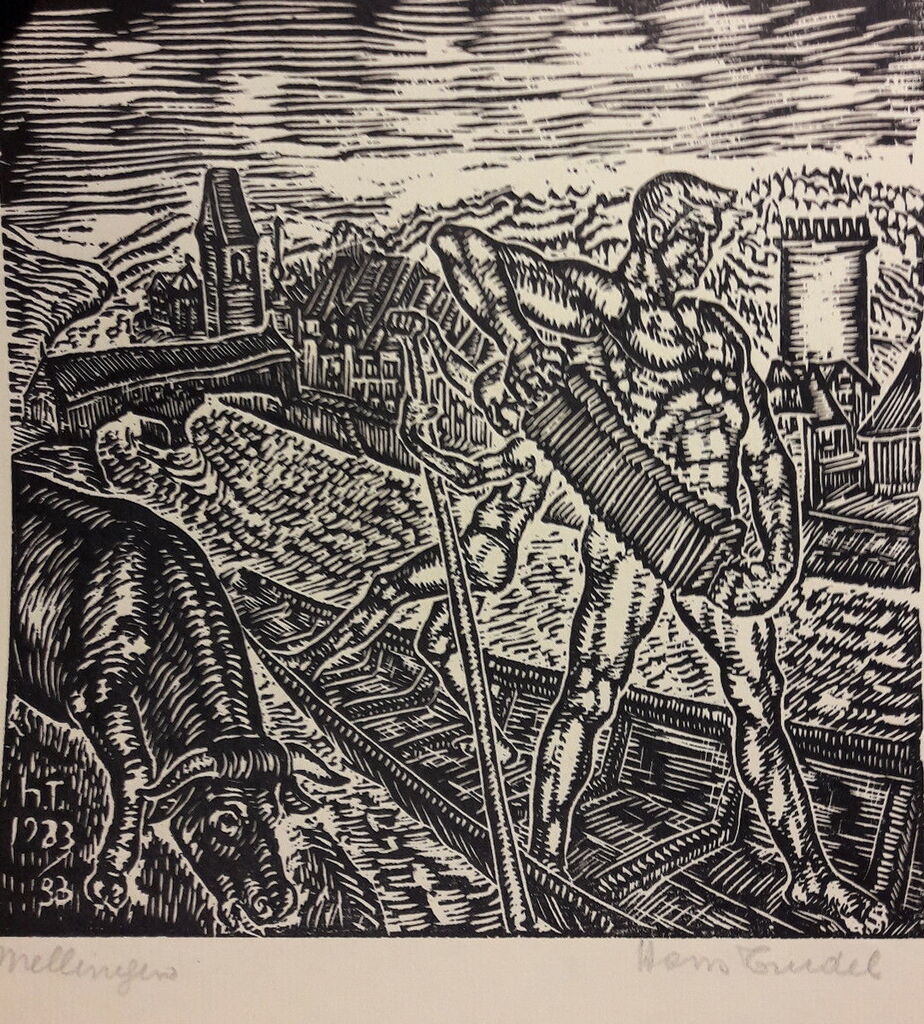 Von 1919 bis 1926 hatte Trudel seine Werkstatt in der Widenmühle in Mellingen. Einziges Werk als Bildhauer ist in Mellingen die Plastik am Hotel „Löwen“. Eine grosse Johannesstatue wurde nicht vollendet. Zudem schuf Trudel drei Holzschnitte mit Ansichten der Altstadt. Allerdings stammt nur einer aus seiner Mellinger Zeit.
